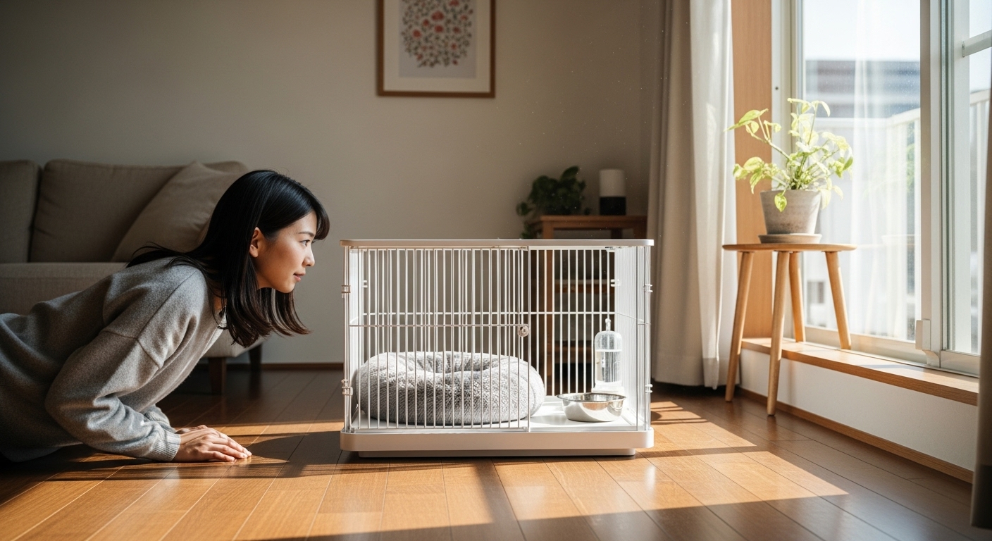ケージがあれば、留守番中も安全な空間で過ごしてもらえます。